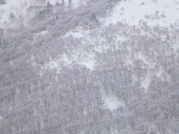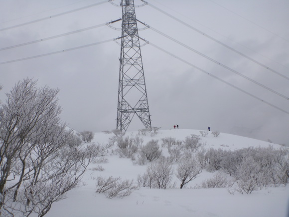 他の登山者もこの辺りからワカンなりシューを着けて山頂へ向かいます。